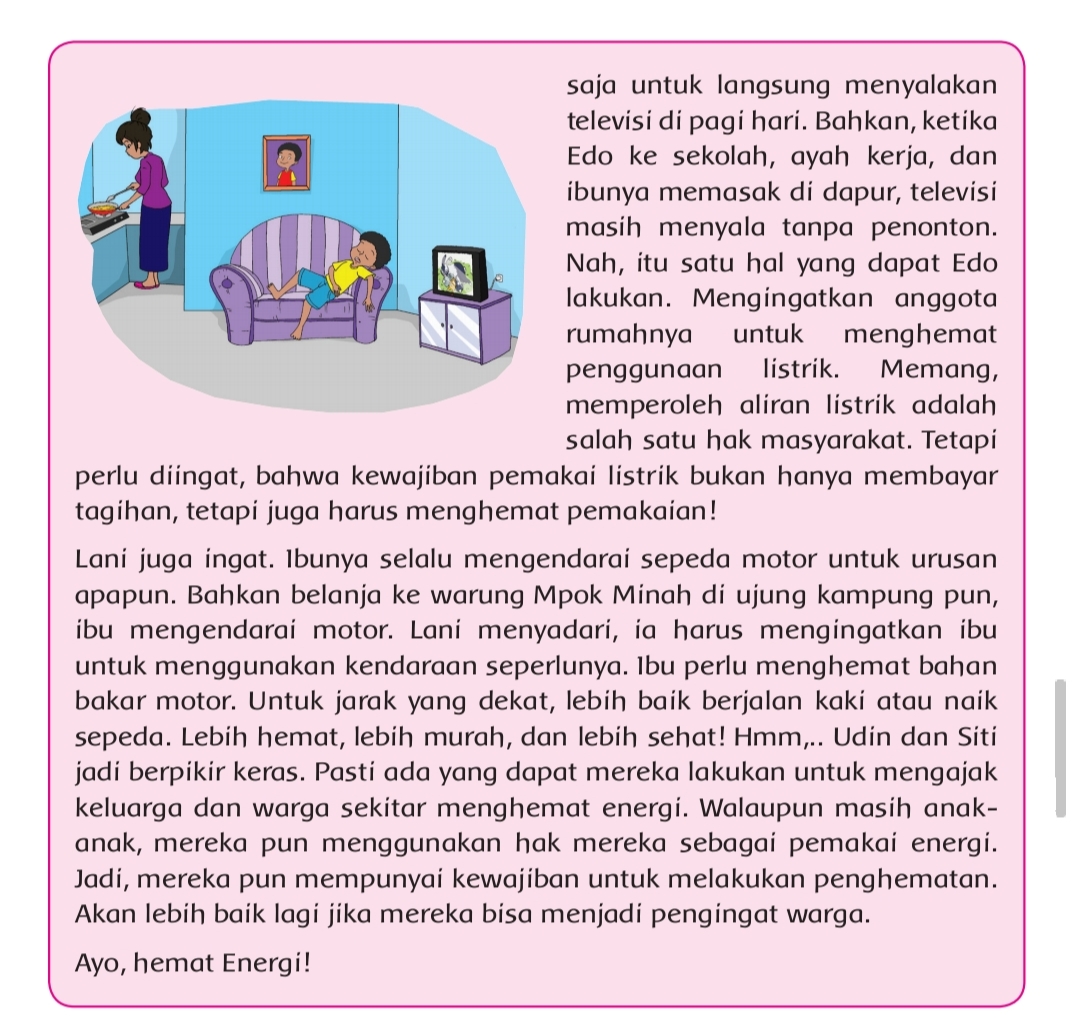 1. Siswa mampu mendiskripsikan manfaat hemat energi, kewajiban, kesadaran berhemat energi, menyanyikan lagu dengan nada yang tepat.